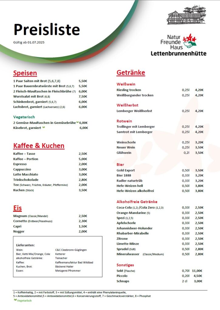 Preise ohne Gewähr, maßgeblich sind die in der LBH ausgehängten Preise!